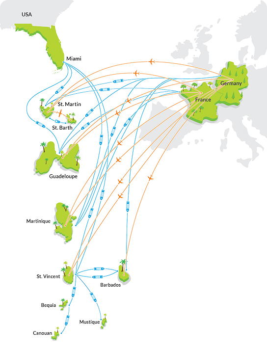 Major international shipping partners, regional carriers and own air and sea transport, equipped with full cooling capacity for fast, reliable, and fresh deliveries across the Caribbean.